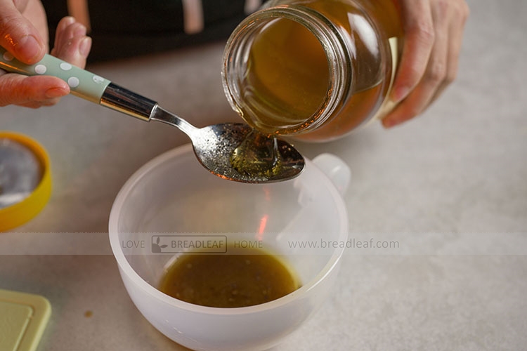 3.继续加入蜂蜜和柠檬汁搅拌至均匀