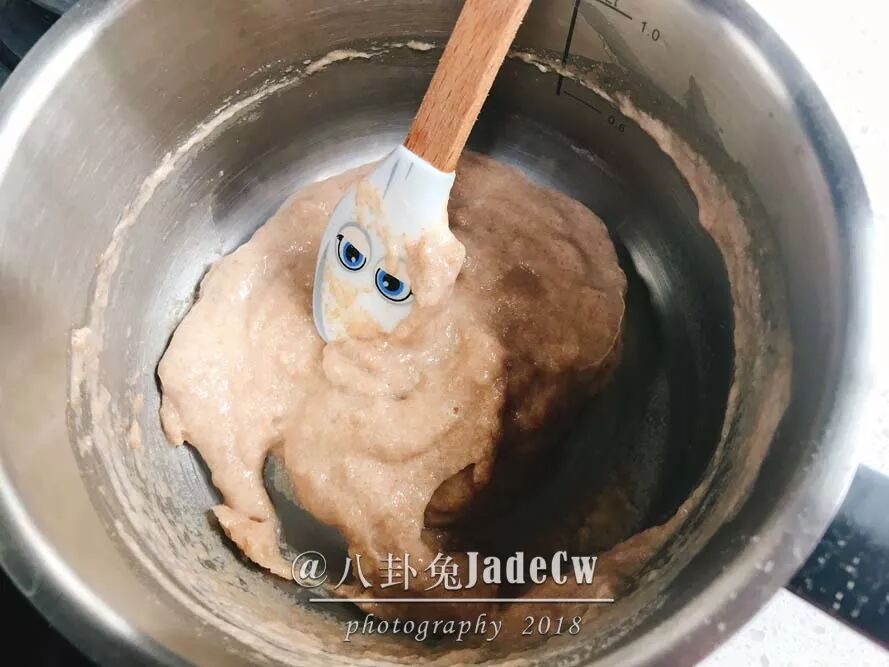 如果没有厨师机可以用筷子迅速搅拌把酱汁都打进去(手酸)