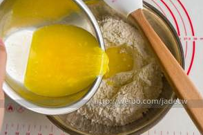 鸡蛋打散和水混合,一点点加入面粉里。混合成团即可。无需特别均匀,没干粉成团就ok
