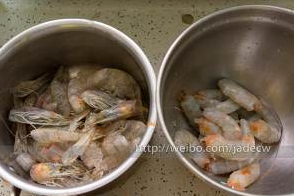 虾去壳去皮。虾肉剁碎,但虾壳不要扔掉。