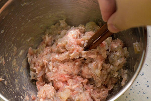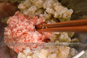 用筷子快熟的搅打给肉馅上劲。还可以强健手臂肌肉群~~~~