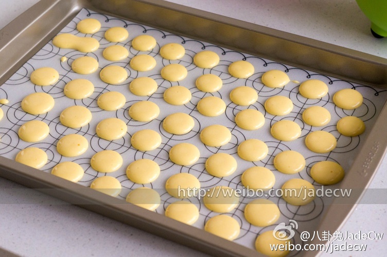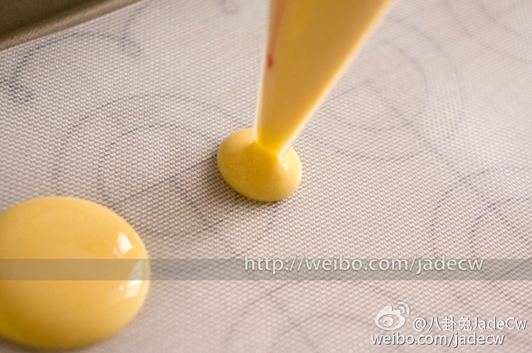 5,在垫好硅胶垫的烤盘里依次挤成1元硬币大小。