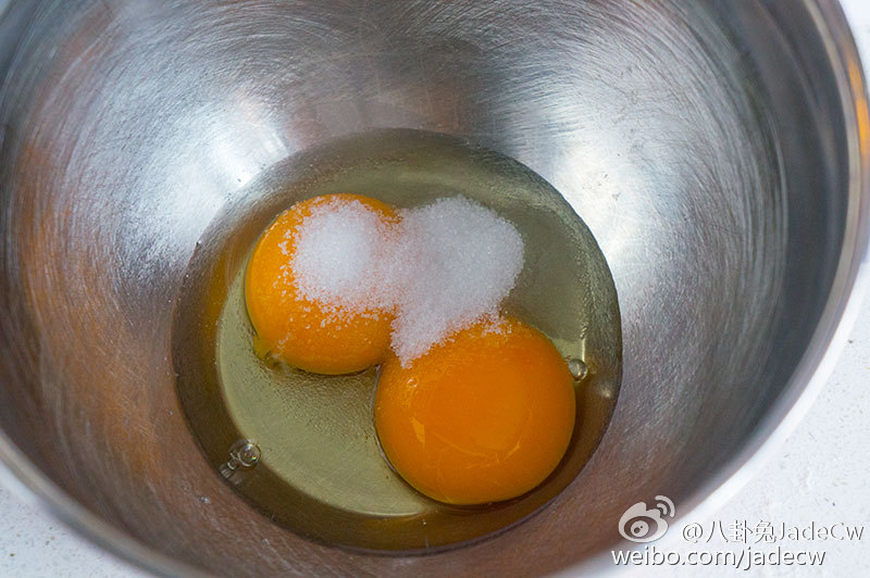1,蛋黄蛋白,加入砂糖,用打蛋器高速打到颜色变浅并粘稠,低落时候痕迹慢慢消失。