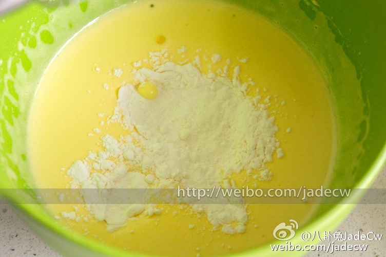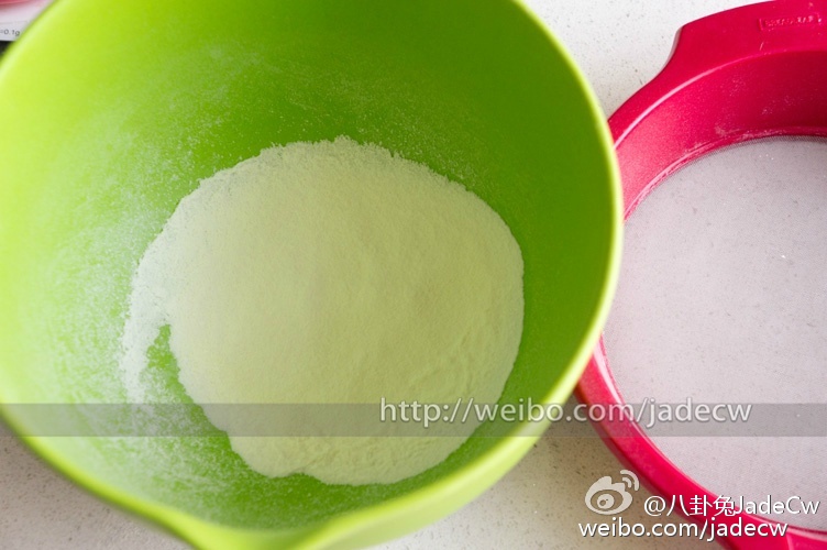 2,低筋粉和奶粉混合均匀,建议过筛一下。因为搅拌过程很快,防止结块。