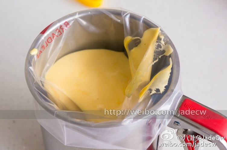 4,准备好一个不要剪开的裱花袋,用杯子撑开(我是用面粉筛啦)