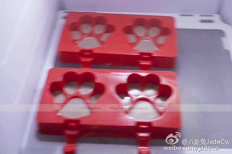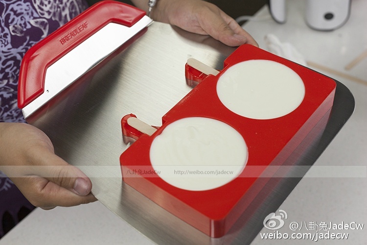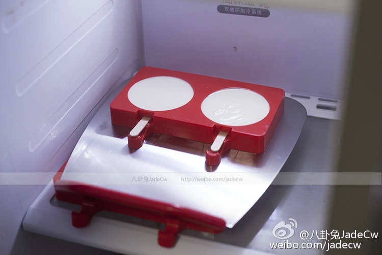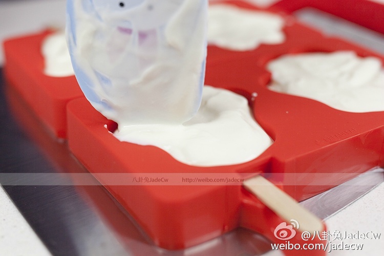3,把1+2混合均匀。然后倒入雪糕模具,插上冰棒棍。扔冰箱。完事儿。等吃。