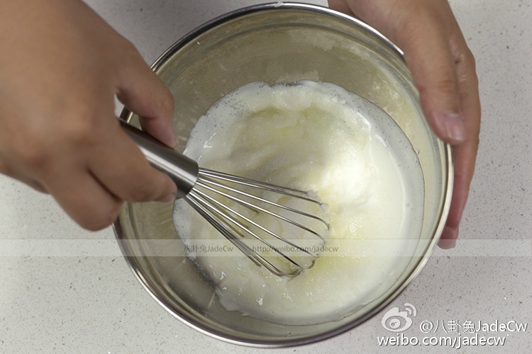 1,酸奶+糖,搅拌至糖融化无颗粒。所以这一步如果有条件用糖粉就非常省事儿,不过即便没有,也就是多拌合几下子而已。