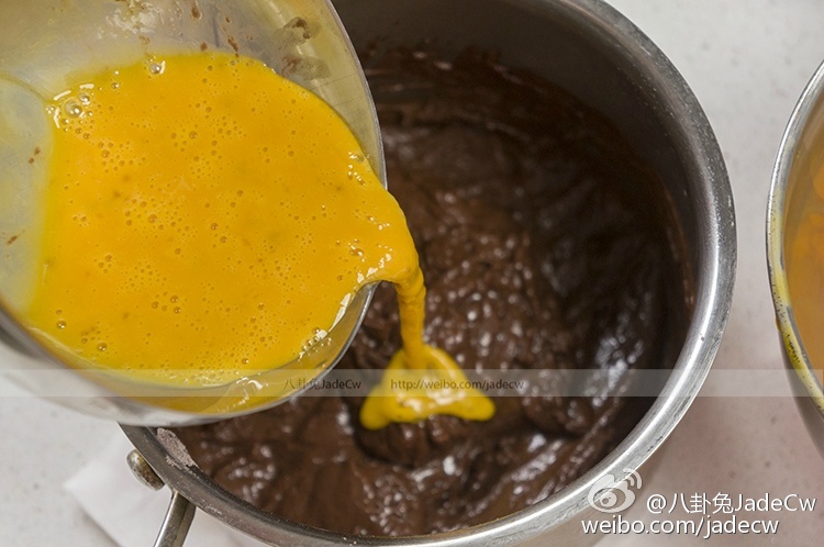 5,拌好的蛋黄糊状态就如同融化的巧克力一般,丝般柔滑(诶,这好像是熊猫的台词),有多少人想念熊猫了,请评论让我看到你们