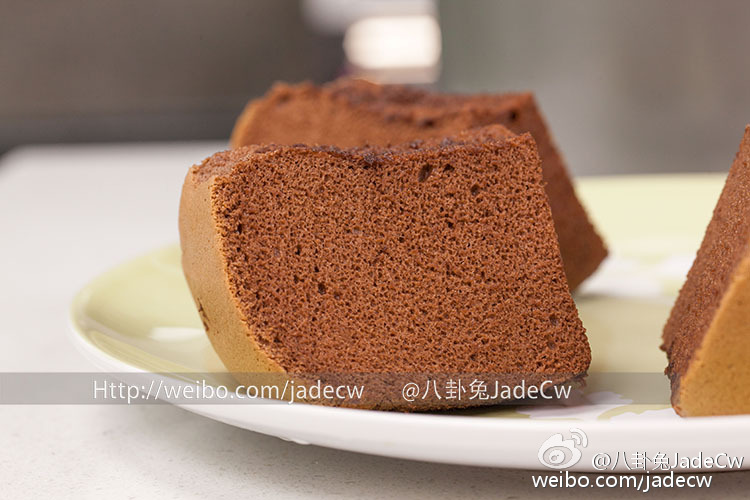 喜欢这个蛋糕,做了好几次,除了绵软的口感,它不需要像戚风那样倒扣到彻底冷却才能脱模。而是出炉没多久,自己摇摇晃晃就下来了。完美的毛巾面真是让处女座的我爱不释手….