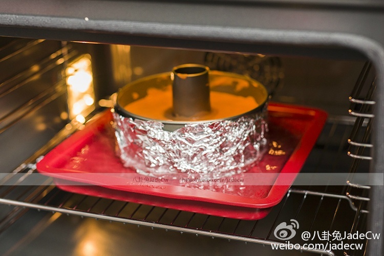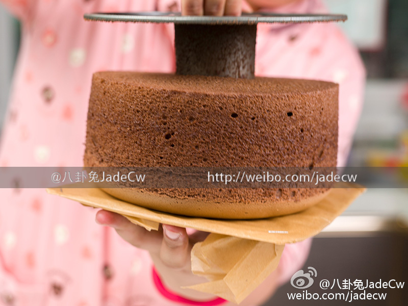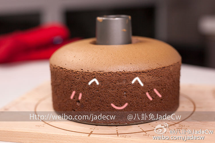 如果用这个模具做普通戚风,还是可以正常的粘附和爬升的哦。而且也依然需要倒扣冷却。众所周知一般戚风都需要倒扣才会不塌陷,所以千万不要和这个配方搞混掉哦。