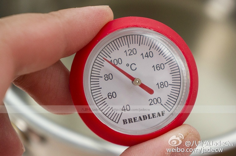 1,将植物油加热至锅底有油纹出现,此时油温大约在97-98左右。如果有温度计可以测下。