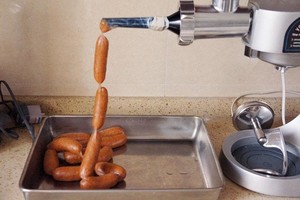 12.灌香肠方法2:用机器,厨师机的香肠配件,没啥技术含量,开动注意控制速度就好。太快了容易爆开~