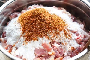6.所有调料与肉块拌合(注意是所有哒,就是糖啊,酒,盐啊,都放进去啦哈)
