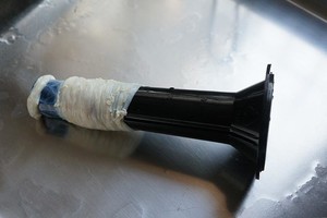 2.然后往肠衣里面灌水,拎起来,检查有没有打结,大的破洞。必要的时候需要重新截断。于是肠衣的准备工作就完成啦~