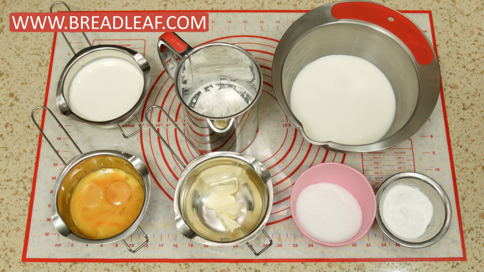 下面是做泡芙要用到的材料,我为了不让自己畏难。每次只先配这个步骤要用到的原料。
