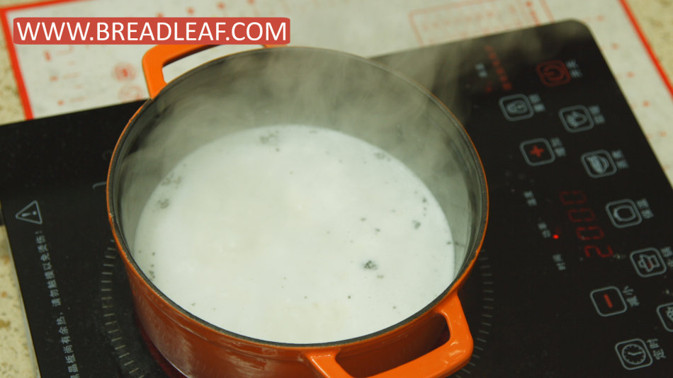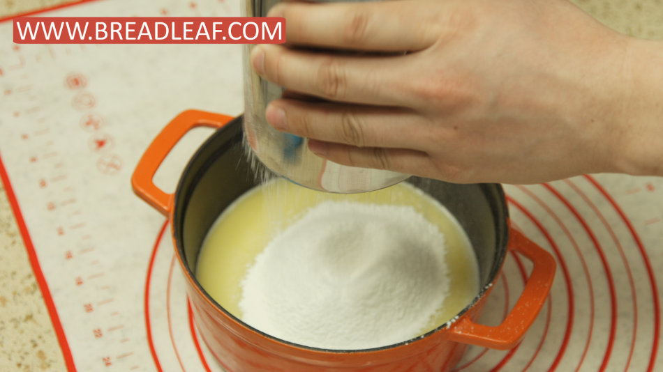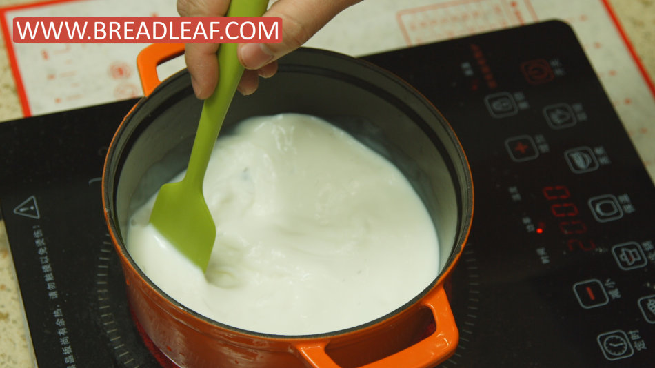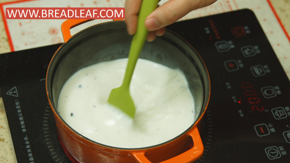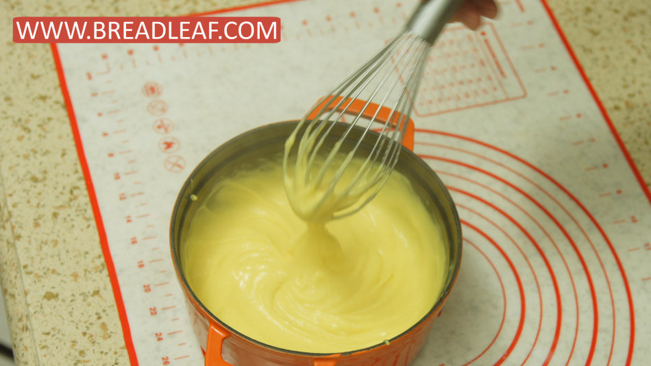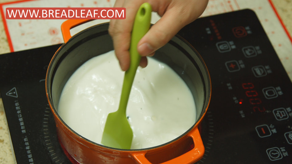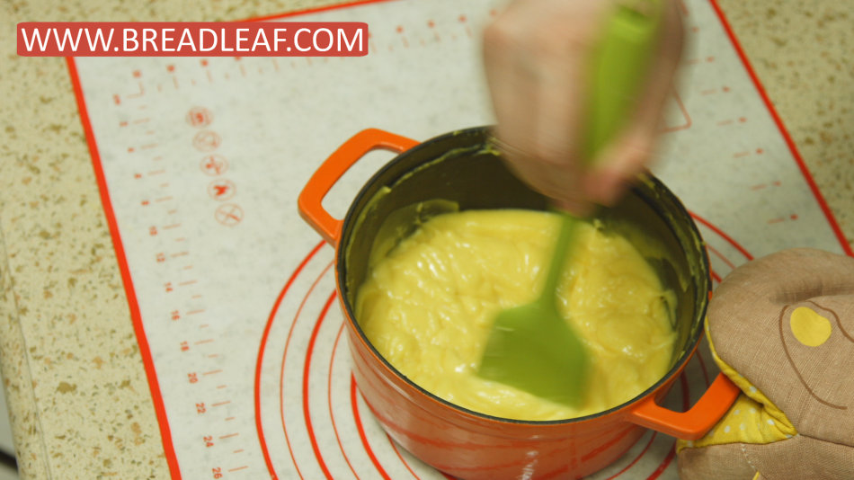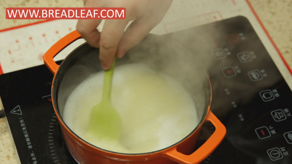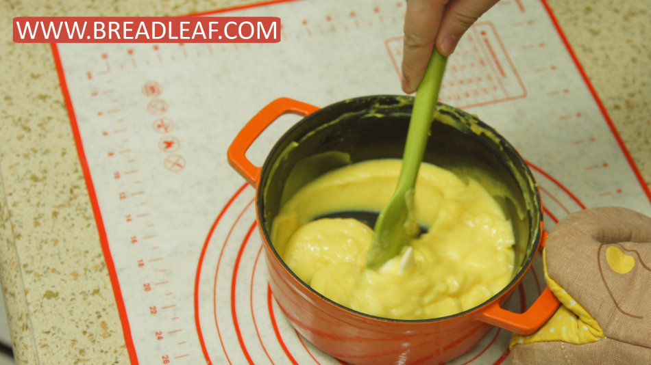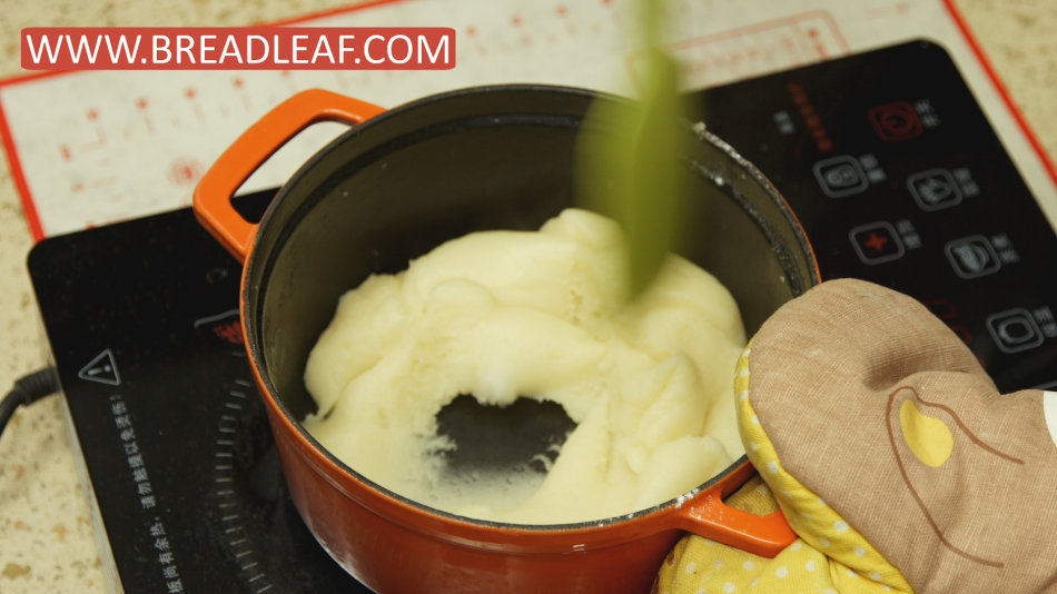 1.把水倒入锅中加热,加入盐和黄油。然后一边加热一边搅拌。加热到沸腾以后,从火上移开锅,停止加热。筛入低筋粉。搅拌面糊到成为一体以后,再到火上继续加热。一边加热一边搅拌。直到看到锅底有薄膜以后,停止加热,面糊准备完毕。我一开始感觉,哇,这个很复杂,一会加热一会不加热。其实很简单。原理就是为了糊化。移开热源,也只是希望把整个面糊搅拌均匀后继续加热糊化。理解到实际的目的,就很容易理解了。