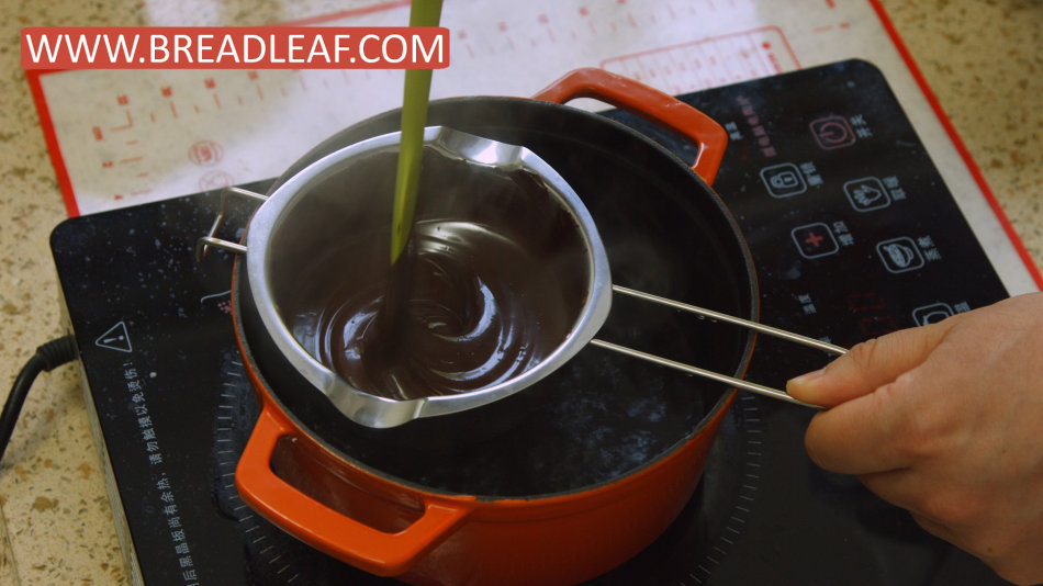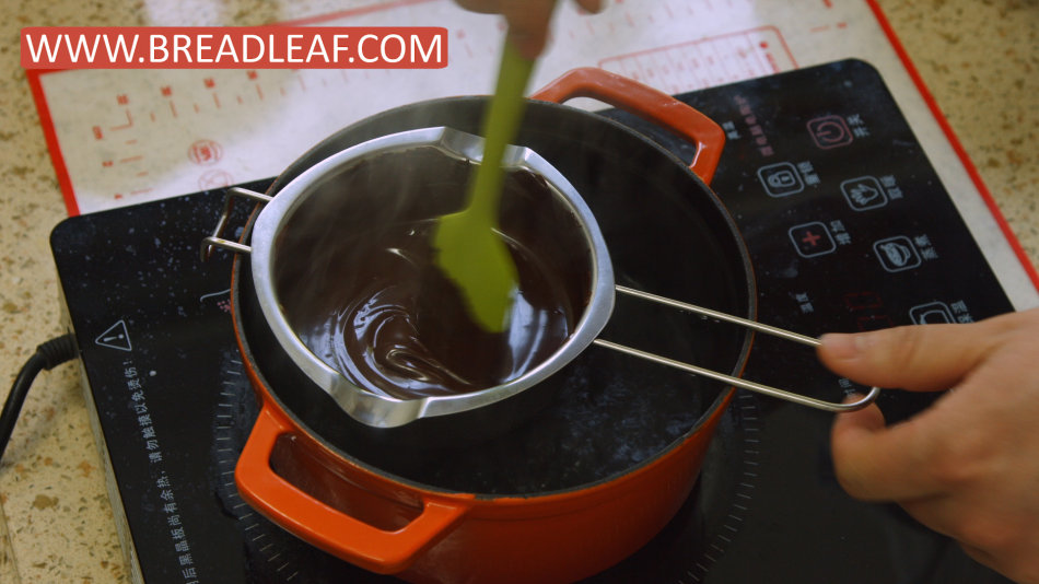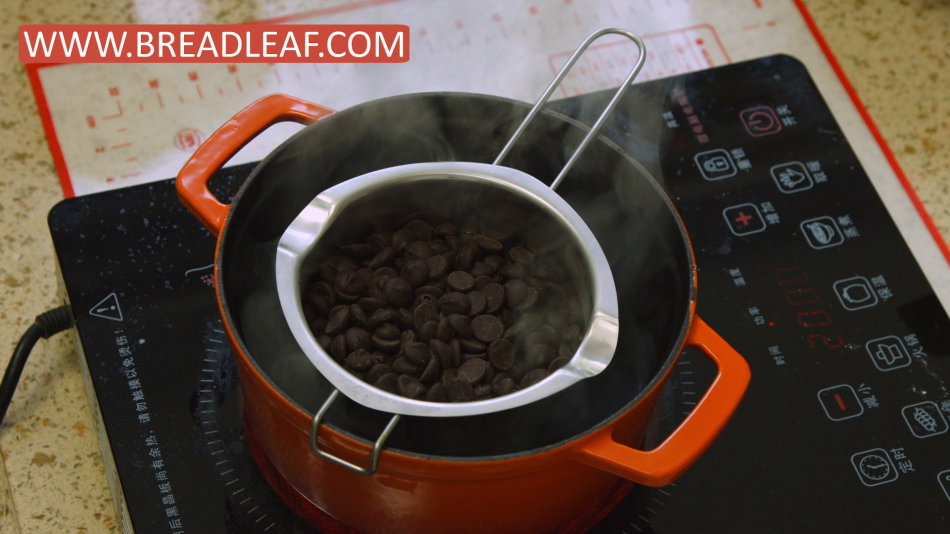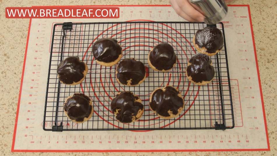 既然到这个程度,再豪华一些。用糖粉筛拍一些糖粉在巧克力上。
