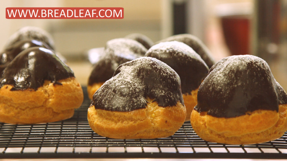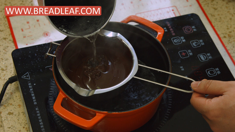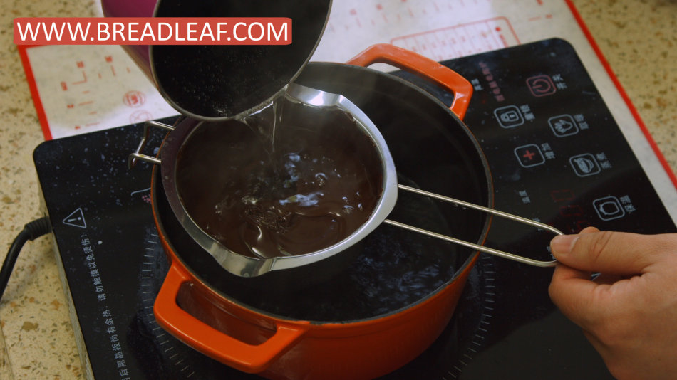 把水放在一个小锅里加热。然后倒入糖。把糖水加热稍微收一下水。(让水蒸发一些)然后把巧克力放在巧克力加热碗里加热。一边加热一边搅拌。全部融化以后。就像以前看的巧克力广告一样,丝般柔滑。那时候觉得融化巧克力是最漂亮的。巧克力融化后,加入糖水。继续搅拌。等再次到丝般柔滑的状态就是好了。关掉火,不要移开热水。开始让我们的泡芙都进去洗个澡。泡芙倒过来头朝下,进去蘸巧克力。尽量多进去一些,这样豪华嘛。这样泡芙要是在店里买,不知道要多少钱了。成本大大滴。不过自己家做,要实在。