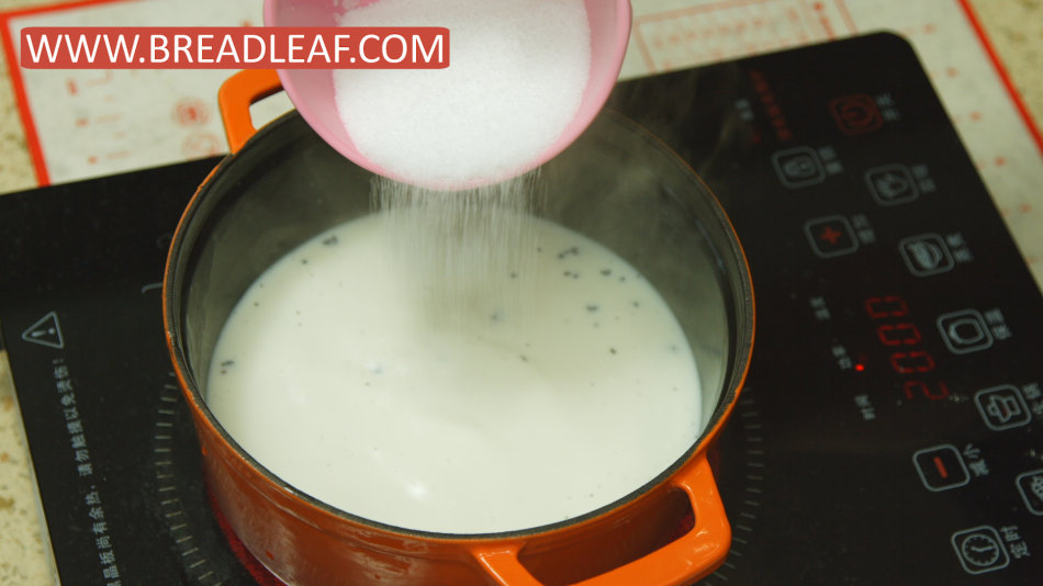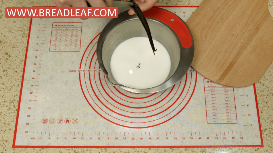 1. 上图照片没有拍香草豆荚,需要我们手工准备一下。用小刀把香草豆荚从中间切开,用刀把香草籽刮出来。放到牛奶里。香草豆荚很香,有一种特别让人愉悦的感觉。然后把含有香草豆荚的牛奶加热,加入1/3的白砂糖,一边加热一边搅拌。香草豆荚的香味基本来自香草籽,而香草味素的分子很容易和脂肪和蛋白质粘在一起。所以放在牛奶里,可以让香味很好的均匀分布。一边加热,那个香味已经充满整个厨房。我彻底被征服啦,以后有空就做点香草牛奶喝。是不是夸张?自己煮一个就懂了,最后就:香草牛奶,你懂的。