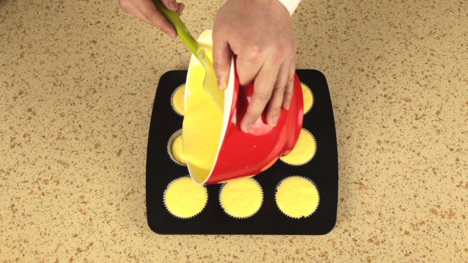 关键点:倒入液体的时候,只要齐平到模具的上口就可以了,或者纸杯的上口,如果希望蘑菇头大,只能稍微多一点点。千万不能太多。因为蛋糕在烘烤过程中,会涨高的,不要太贪心。不然脱模的时候,蘑菇头会碎掉的。