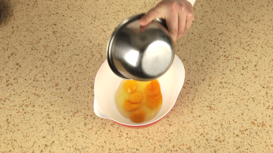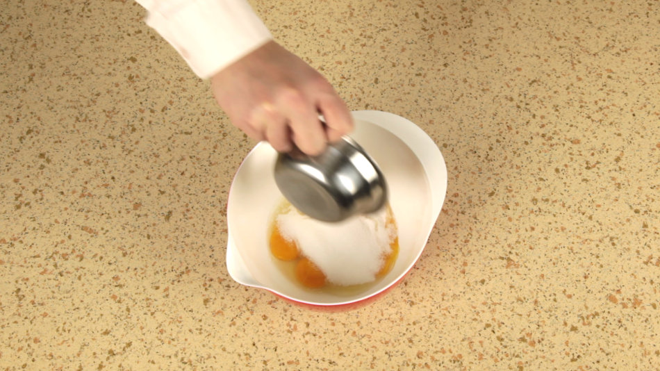 第二步:把“鸡蛋:171g”和“细砂糖:93g”导入搅拌盆中,用电动打蛋器用最高速打出泡泡。这里用高速打的原因,是为了让空气和蛋液混合,也就是起泡。空气进入蛋液主要是在这一步。那为什么要有泡泡呢,蛋糕的组织吃起来松松的,主要就靠泡泡啦。