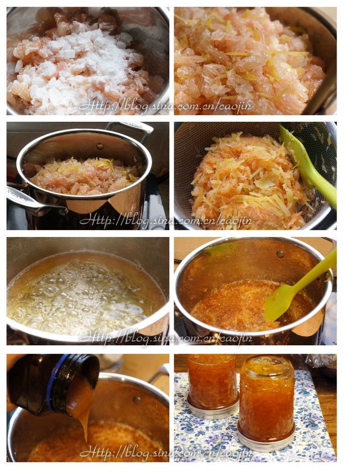 材料:柚子一个(去皮果肉约1kg),冰糖:400g,蜂蜜:150g
