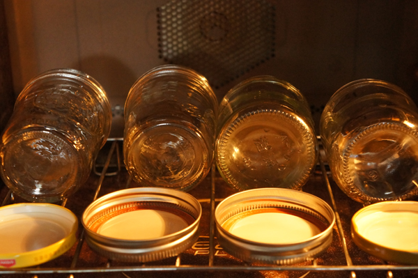 (注意,装果酱的瓶子需是可以密封不漏水的,事先清洗并晒干,内部无水滴,也可以洗净后,放入烤箱120度,烤约10-20分钟,确认瓶内无水滴即可。瓶子可以倒扣或者侧放,我的瓶口对着热风的位置)