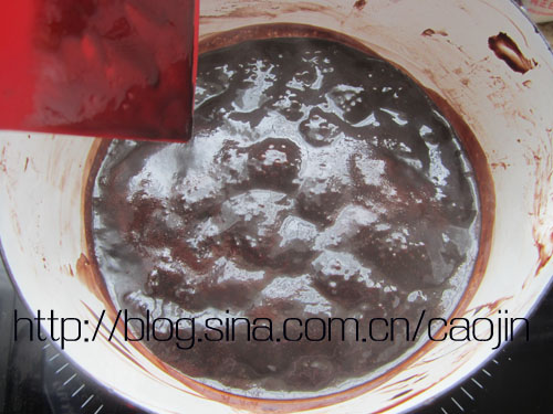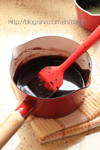 除黑巧克力之外的材料,混合均匀,然后小火加热至沸腾,离火后加入黑巧克力拌匀即可