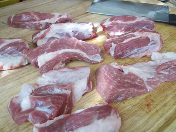 接着把买好的肉,切条。准备腌制入味,叉烧最好买夹心肉,也叫梅花肉好像..就是瘦肉中间会带点肥,但是不多,全瘦肉烤完会柴,口感不够好~