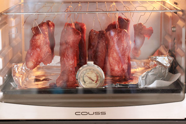 操作的时候,最好先把肉肉挂好,然后肉肉连烤网一起先放烤盘上放一边。然后预热烤箱好了之后,再把烤网,烤盘插进去烤。