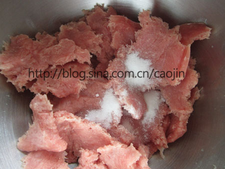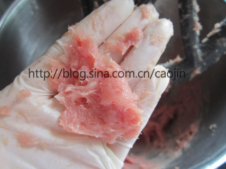 肥肉的处理也一样,打成肉糜后冷冻即可。但是肥瘦最好分开,因为放一起影响肉馅出胶