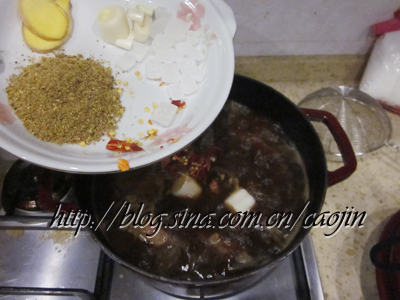 也可以用纱布包把卤料起来,那就先放进去也无所谓啦