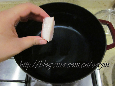 锅洗净之后小火烧干。用一块肥膘肉,趁烫,不停摩擦锅内表明。直到国内变得油油亮亮。
