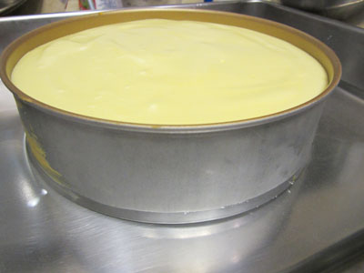 因为蛋糕糊含有很多气泡,比重轻,所以无悬念飘在布丁层上面。