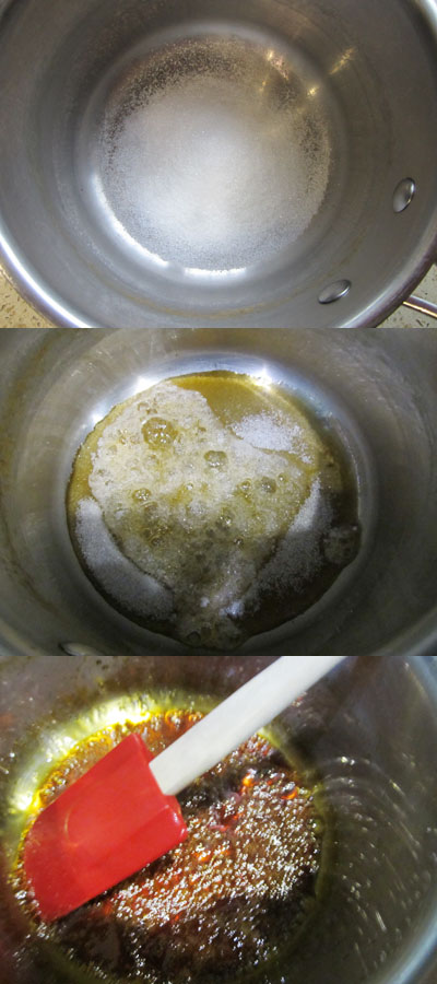 先做焦糖,小锅里放细沙糖,小火加热。另外起一个小锅煮开水。