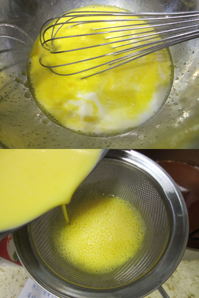 布丁液最后要过筛一下,滤出起泡和未打散的蛋清等