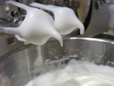 继续打到中性发泡。就是拎起打蛋头蛋白呈小弯钩状