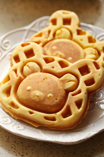 然后我们预热华夫饼模具。到滴一滴水会吱吱烘干的程度。然后均匀刷一次黄油(分量外)