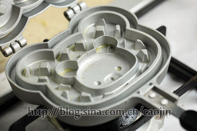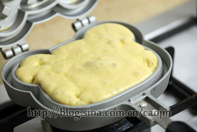 3,面糊不要放太少。这个模具比一般的量大一点,面糊少,撑不起来,表面不熟自然也容易粘~也不容易形成脆壳。