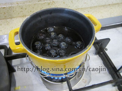 做法也非常简单,少许枫糖浆,加入蓝莓煮沸即可。蓝莓预热会爆开出汁