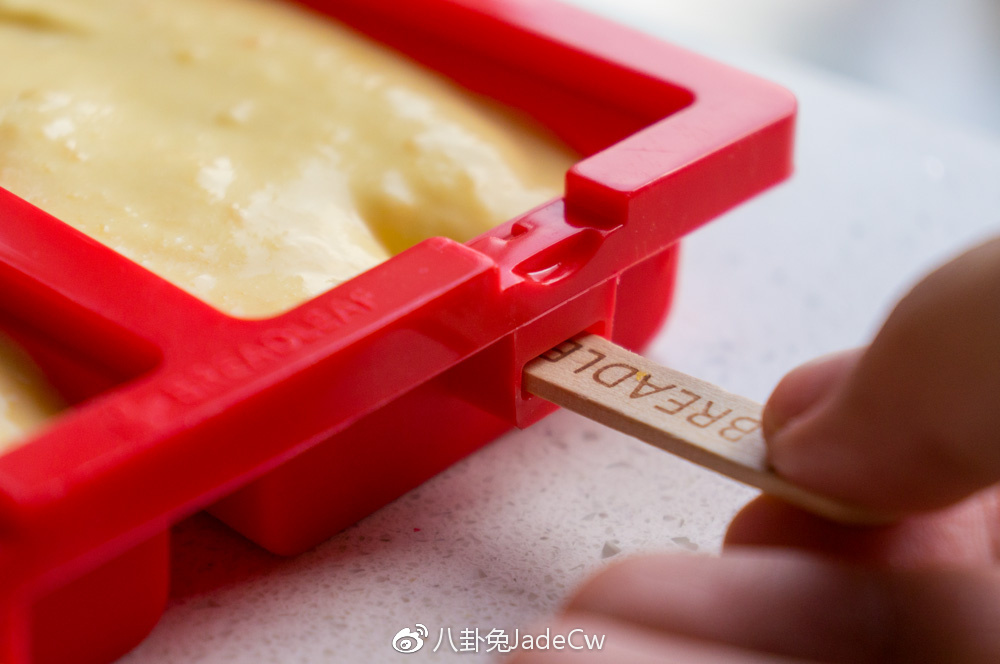 灌好雪糕后,连模具,一起放冰箱冷冻4-6小时。冻硬再脱模。