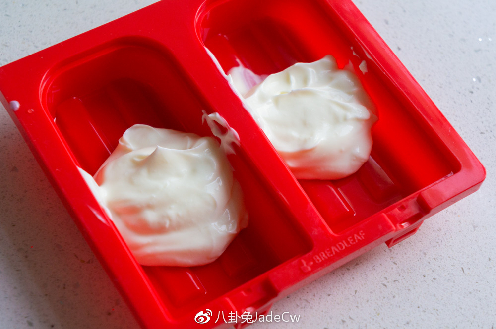 (酸奶底相对牛奶雪糕底,味道更清爽,略有冰渣感。但不是邦邦硬的那种哦,如果用不过滤的酸奶制作,纯水太多,冰硬感会更强,不太推荐)