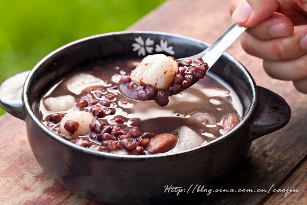经典的吃法有搭配红豆汤,我还放了一些花生。红豆汤煮出一些豆沙来,特别的好吃。