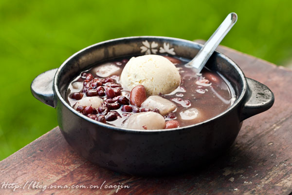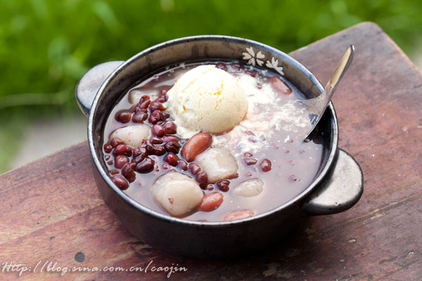冰淇淋在红豆汤里化开来,给红豆汤带来一丝丝奶香和柔滑…哇咔咔