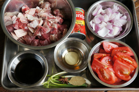 材料:牛肋条(可用牛腩,牛腱):600-700g;番茄:约280g;中号洋葱:半个;