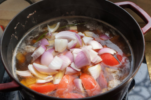 如果喜欢浓浓的汤汁,可以适当减水,喜欢多喝汤或者准备下面就要留足汤汁哟美味汤汁的要领是要放番茄膏+新鲜番茄(注意不是番茄酱哟)