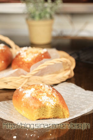 这个配方做出来的包..软软很好吃..撒的糖粉是点睛之笔..虽然有热量之嫌(好吃的哪里有不热的!)
