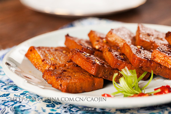 4,压好的豆干,略刷一点油。排入预热180度的烤箱,每一面烤约15-20分钟。