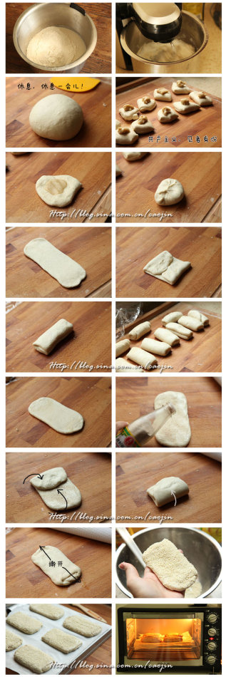 中筋粉:390g 即发干酵母:4g 水:195-200g 其他材料同上,操作不变