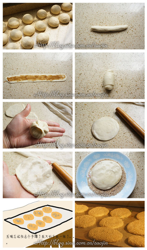 ok,现在说回烧饼。这个烧饼是在结合了偶妈妈和我作为北方人爱吃的麻酱和椒盐口味